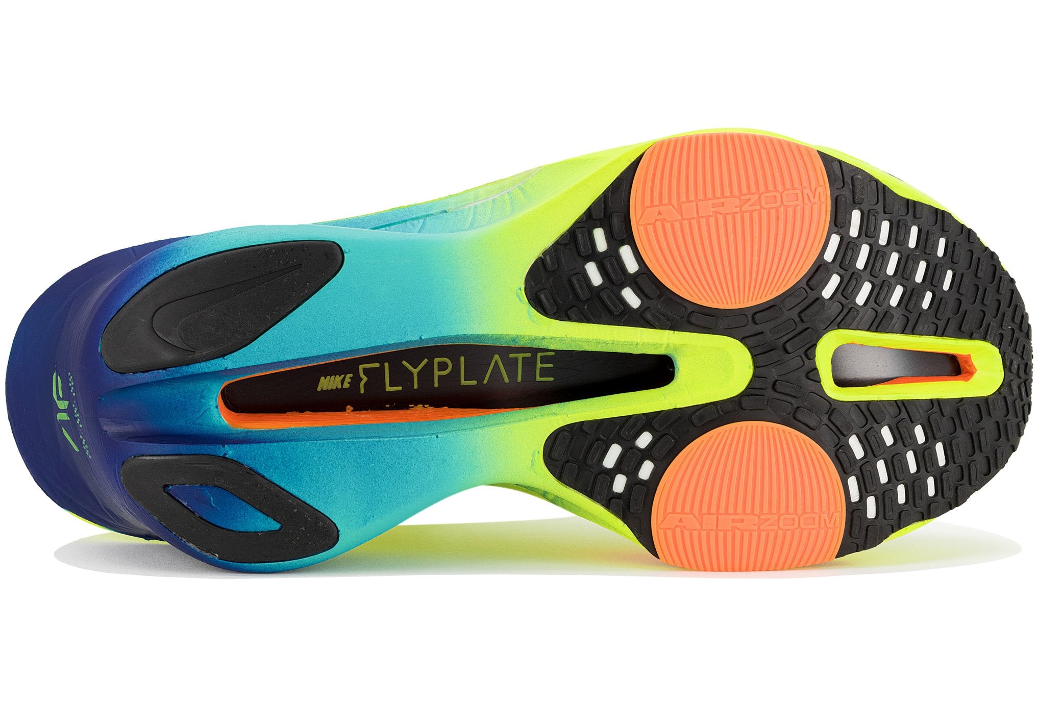 • Amortecimento: A espuma ultraleve, posicionada em todo o comprimento, melhora a transição entre o calcanhar e o antepé. Combinada com uma placa de carbono , proporciona uma passada leve e propulsiva. O calcanhar revisado melhora a estabilidade e a transição durante as mudanças de ritmo. As almofadas de ar na parte frontal, integradas à entressola, visam absorver impactos, facilitar as transições e aumentar a propulsão.